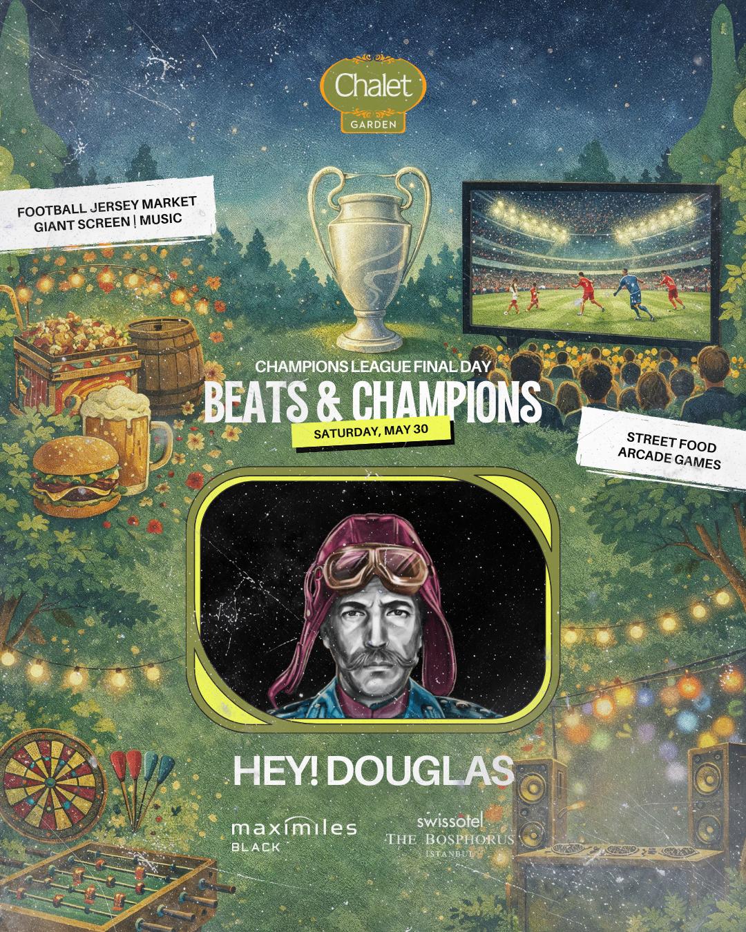 At the center of the lineup, Hey! Douglas takes over following the final whistle, shifting the atmosphere from stadium tension to dancefloor momentum. Known for reworking Anatolian rock and Turkish pop classics into groove-driven electronic tracks, his sets combine nostalgic melodies with modern production, creating a sound that resonates across different audiences. His performances often move between crate-digging sensibility and club-oriented rhythm, building a connection that feels both familiar and forward-facing.