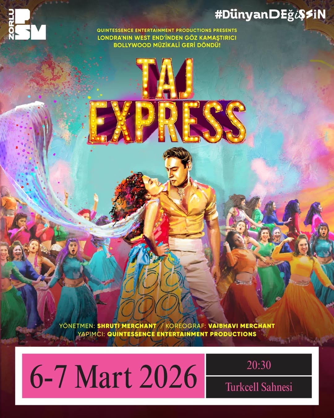 High-energy musical spectacular Taj Express arrives at Zorlu PSM Turkcell Stage on Friday 06 March and Saturday 07 March, bringing the color, rhythm, and cinematic grandeur of Bollywood to life. Blending live music, explosive choreography, and a sweeping narrative rooted in India’s film industry, the production offers a fast-paced journey into one of the world’s most prolific entertainment cultures. Tickets are available via Passo.